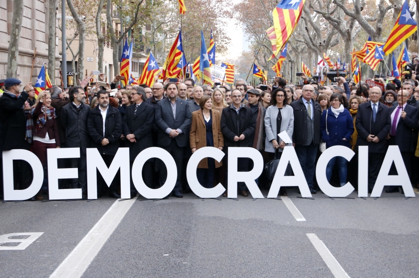 I, per descomptat, en els darrers mesos hem comprovat com els drets i les llibertats han sigut també vulnerades de forma flagrant aquí, a Catalunya. Hem sigut testimonis de l'acció repressiva d'un estat demofòbic que, per aturar la voluntat de decidir d'un país, ha recorregut al menysteniment de drets fonamentals com el d'expressió, el de reunió o el de la llibertat d'informació. Un estat que no ha dubtat en trepitjar sense contemplacions els drets civils i polítics, individuals i col·lectius, d'una part de la seva població amb l'única intenció de castigar-la per haver gosat tenir uns objectius polítics que, simplement, reclamen més justícia, més democràcia i més progrés social.